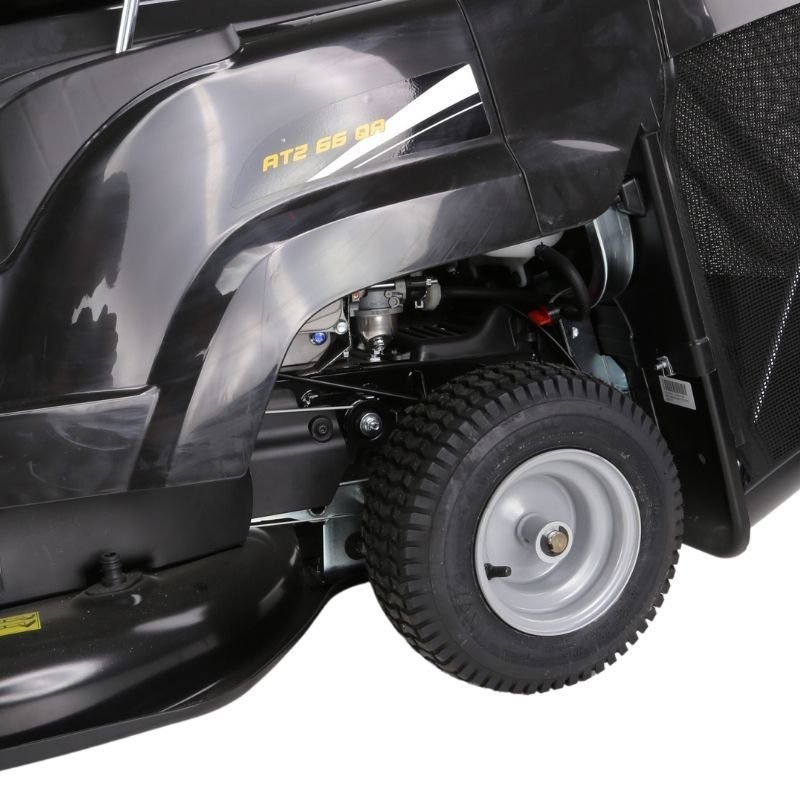 - Roues avant 11×4.00-4 « , roues arrière 13×5.00-6″ avec bande de roulement pour ne pas endommager la pelouse – rayon de braquage 155 cm –