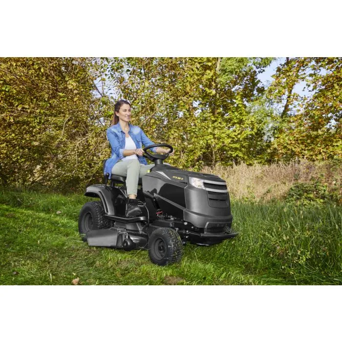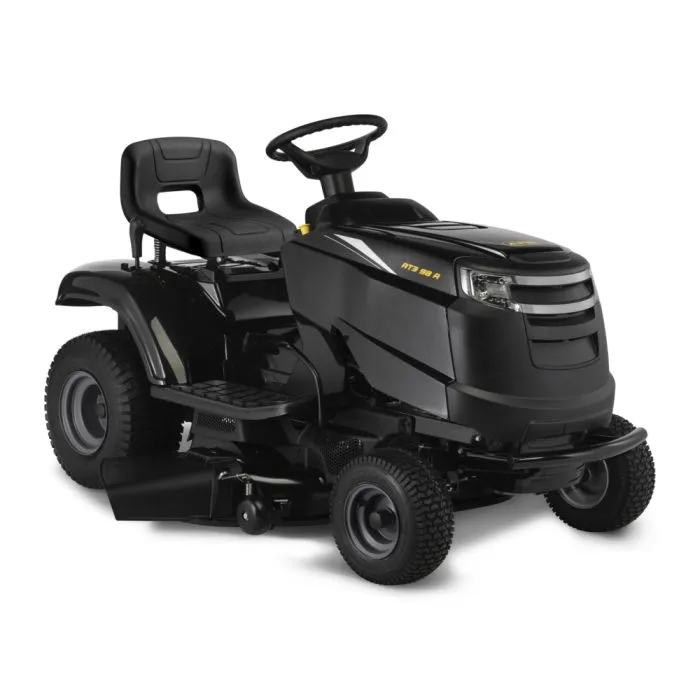 - Plateau de coupe de 98 cm et entonnoir d’éjection latérale solidement construit pour gérer les pelouses jusqu’à 4500 m2.